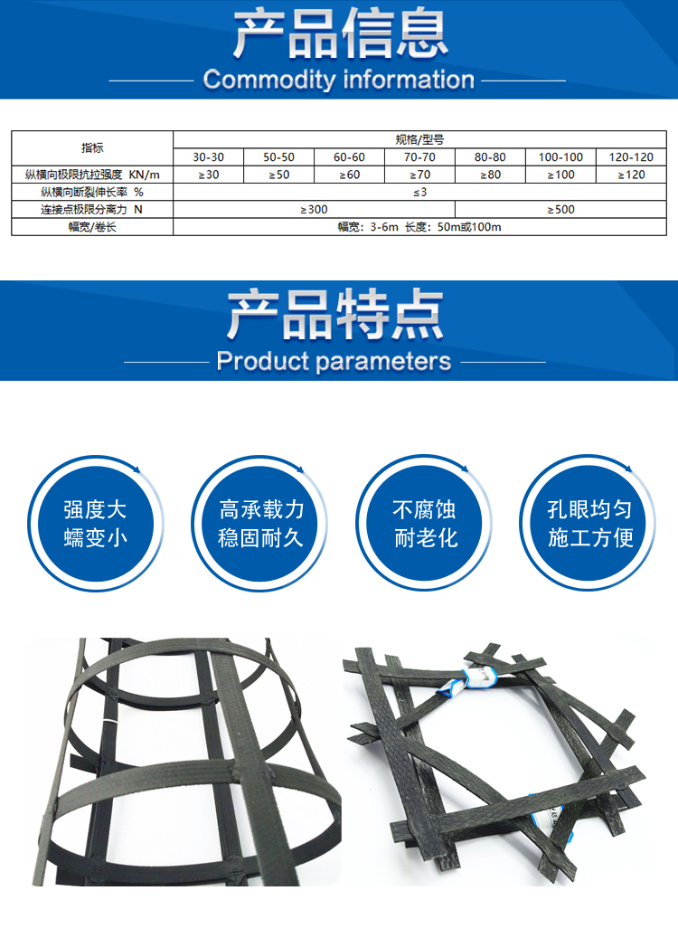 0538-5897089特點(diǎn):鋼塑土工格柵與傳統(tǒng)土工格柵相比更具有強(qiáng)度大、承載力強(qiáng)、抗腐蝕、防老化、摩擦系數(shù)大、孔眼均勻、施工方便、使用壽命長(zhǎng)等特點(diǎn)。能有效的避免在施工過程中被機(jī)具碾壓、破壞而造成的施工損傷。